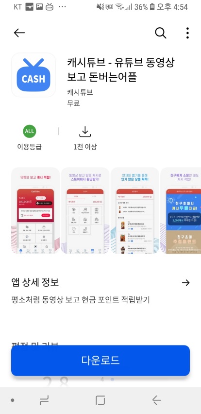 캐시튜브는 플레이스토어 등에서 다운로드 받을 수 있습니다.