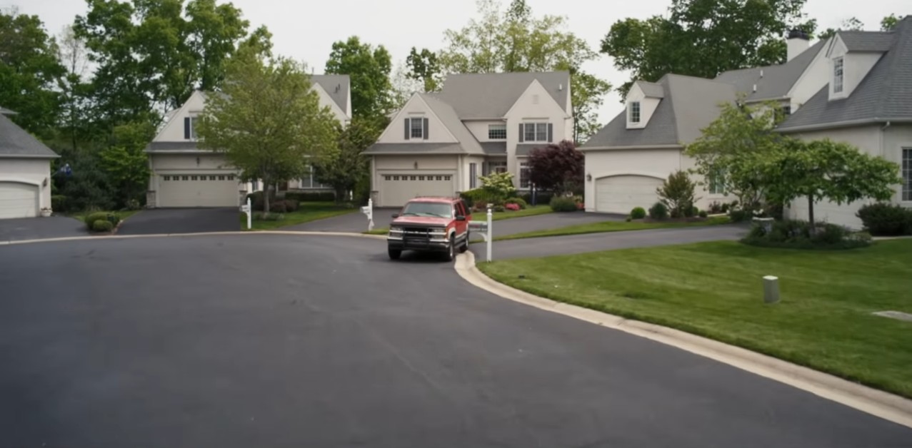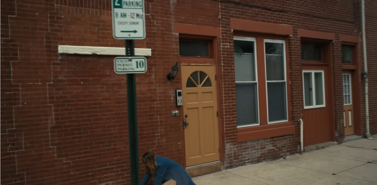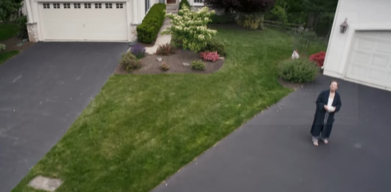화면이 붉은 벽돌집으로 돌아가는데 아마 여성이 아내인 것 같고, 벽돌집이 자신의 집으로 보입니다.