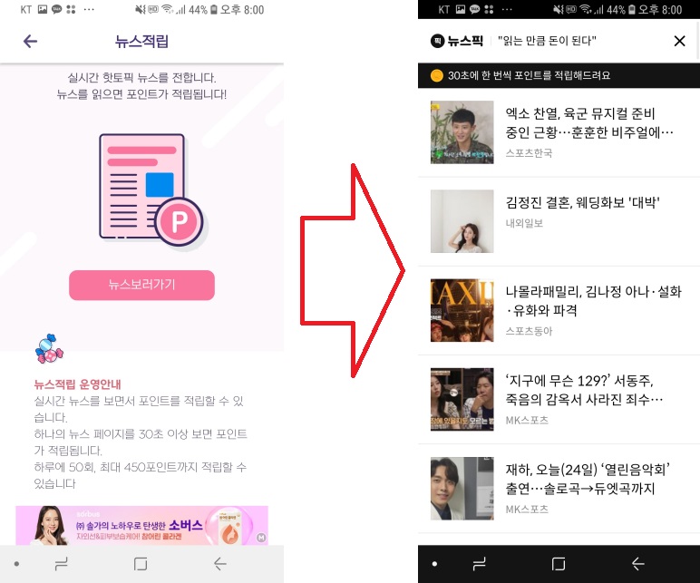 뉴스를 30초동안 보면 소량의 포인트가 적립됩니다.