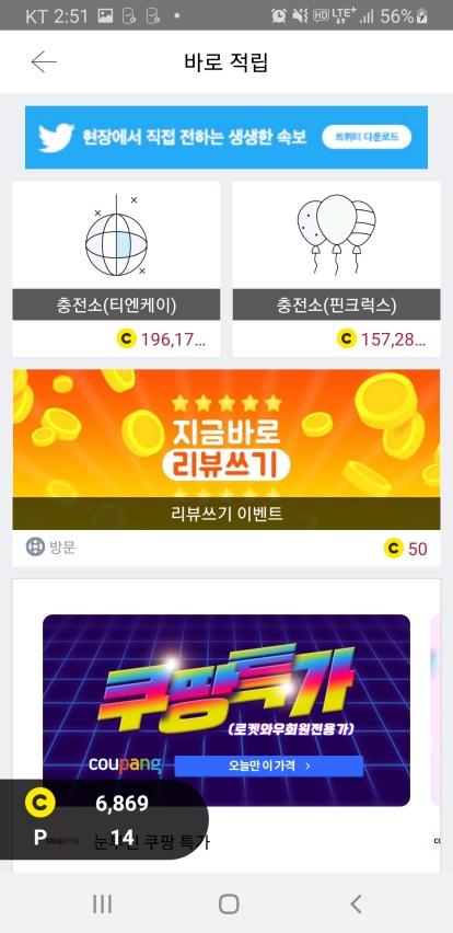 3. 더 많은 캐시가 얻고싶다면 [바로적립] 이용하자!