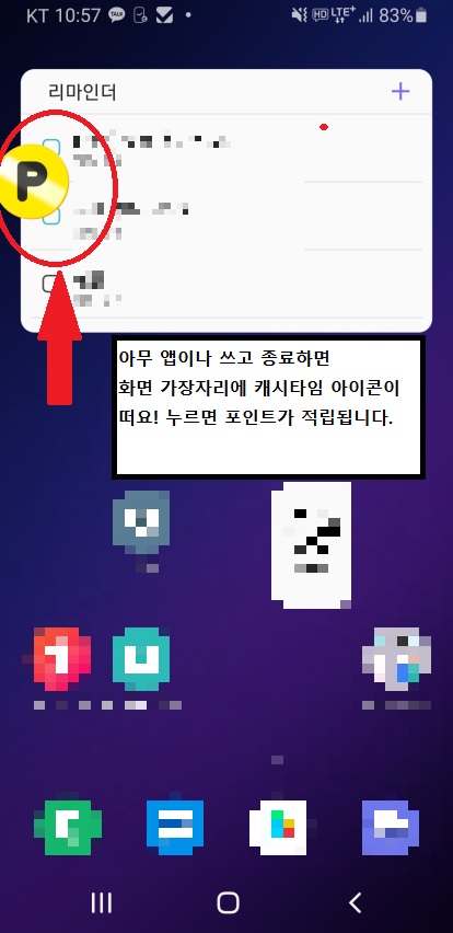 앱을 종료하고 나면 위 사진처럼 '캐시타임 아이콘' 팝업이 작게 나타납니다.