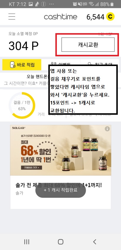 캐시타임은 만보기능도 제공합니다.