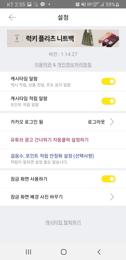 앱 내 설정에서 캐시타임과 관련된 설정(중요사항, 적립알람 등)을 하실 수 있습니다.