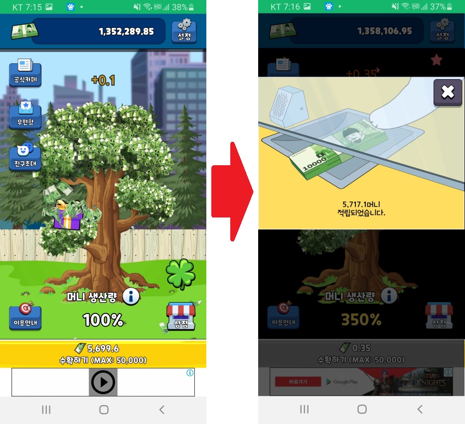 돈농사 메인화면에 있는 돈나무가 춤추면서 알아서 돈이 툭툭 떨어질겁니다.