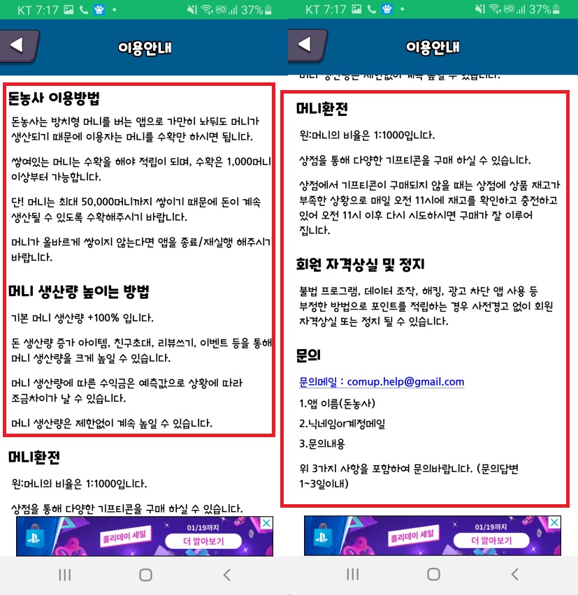 돈농사에 대한 이용가이드는 앱 내 '이용안내'를 이용해주시면 됩니다... 라고는 하지만 위 사진에 나오는 내용이 끝이에요 ㅋㅋㅋㅋㅋ