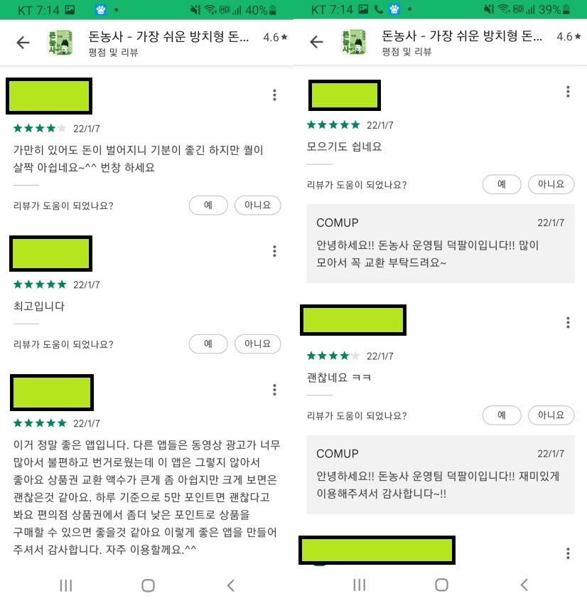 돈농사 앱을 본격적으로 보기 전에 사용자들이 이 앱을 어떻게 평가하는지 볼까요?