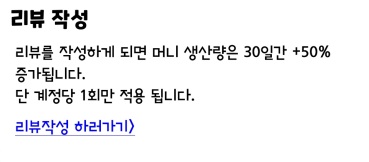 " 리뷰를 작성하면 머니 생산량이 더 오른대! "