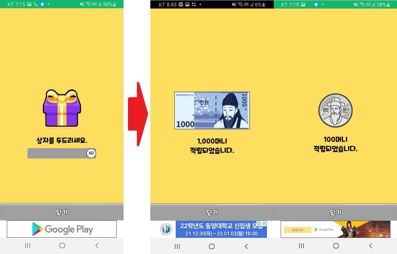 돈버는앱이 으레 그렇듯 여유를 갖고 천천히 모아가면서 일정 액수가 되면 적은 금액 상품 하나 사서 소소하지만 확실한 행복을 얻게 해준다는걸 꼭 기억해주세요~