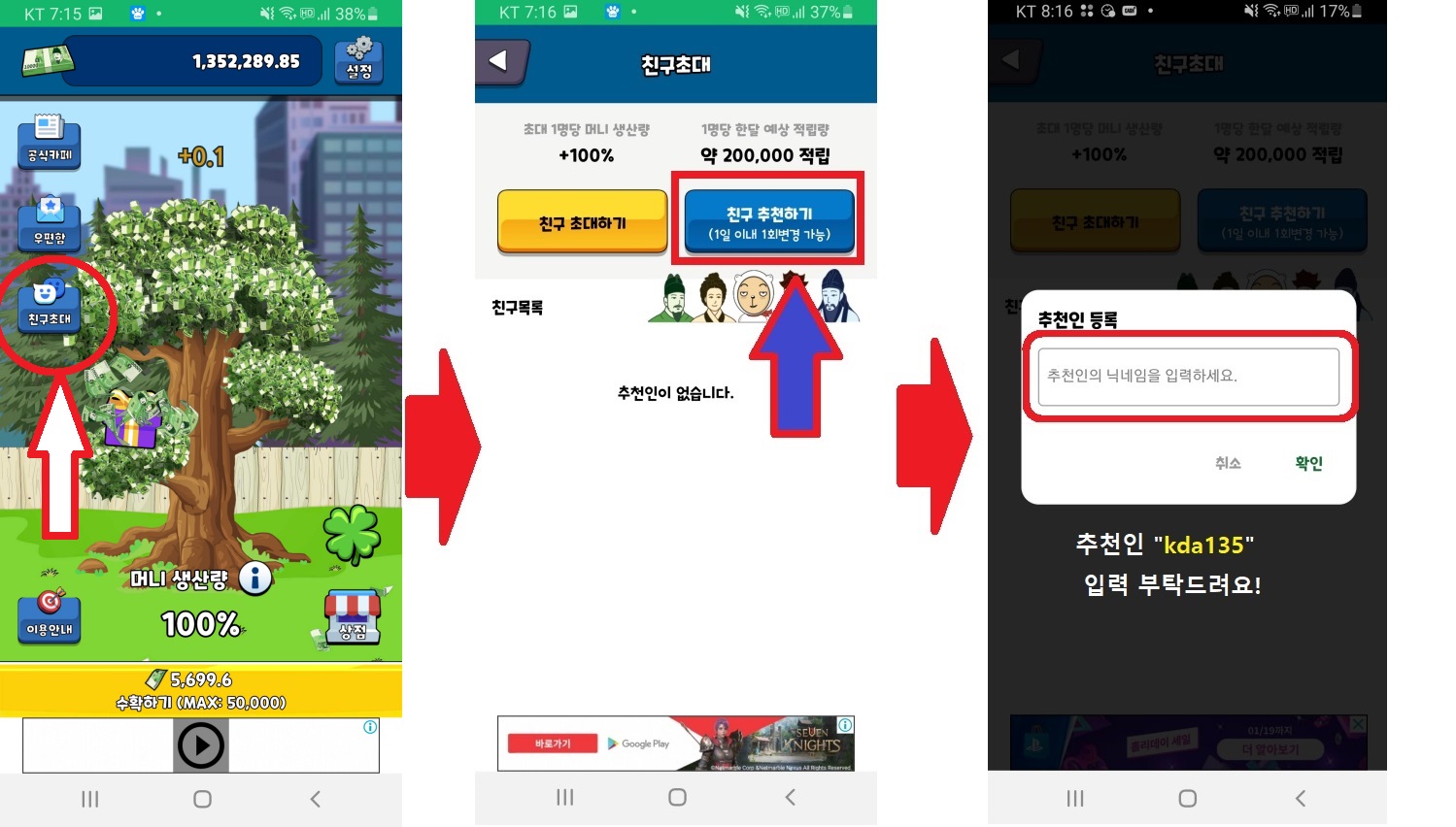 <<● 돈농사 추천인 입력하는 방법 ●>>