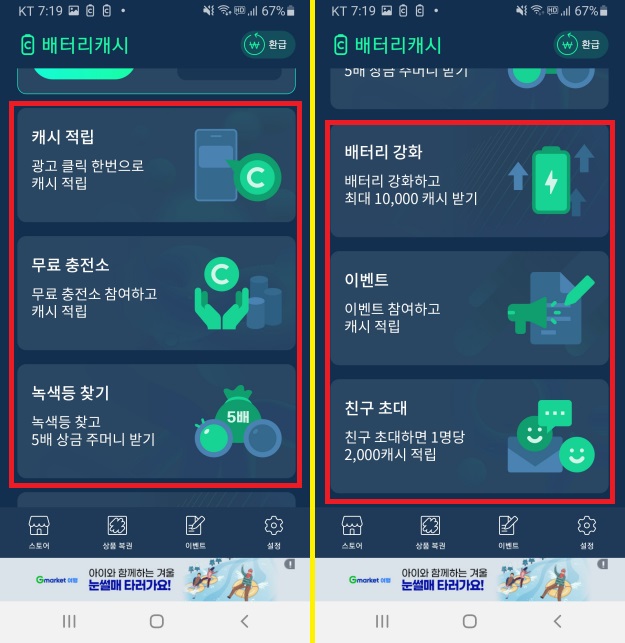 자, 이제부터 배터리캐시 앱 내 다른 방법으로 캐시를 획득할 수 있는 방법들을 살펴보겠습니다.