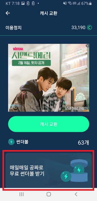 배터리캐시 앱 실행하고 썬더볼 교환하는 곳에 들어가보면,