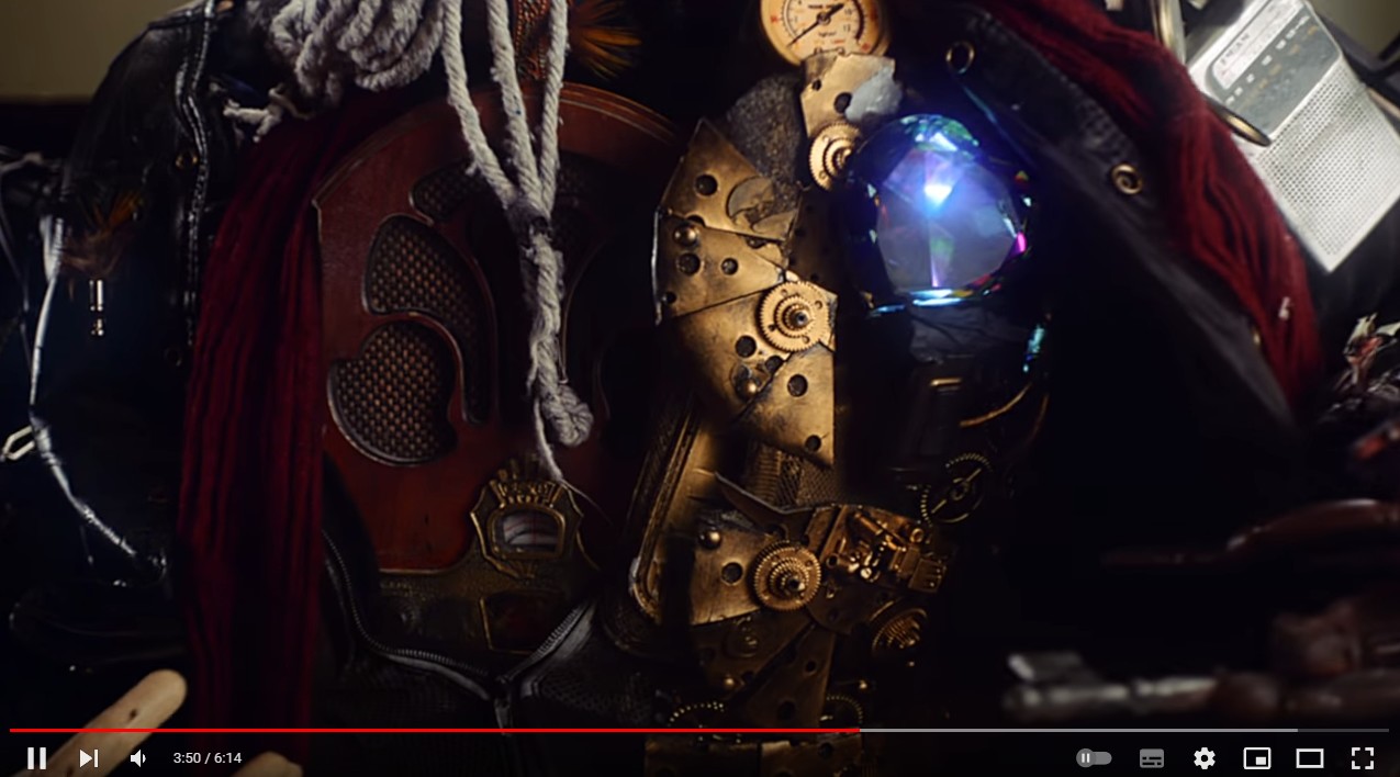 얘기를 들은 로봇은 자신의 품 속에 있는 보석을 보여주며 음악 플레이어의 볼륨을 높이기 시작합니다.
