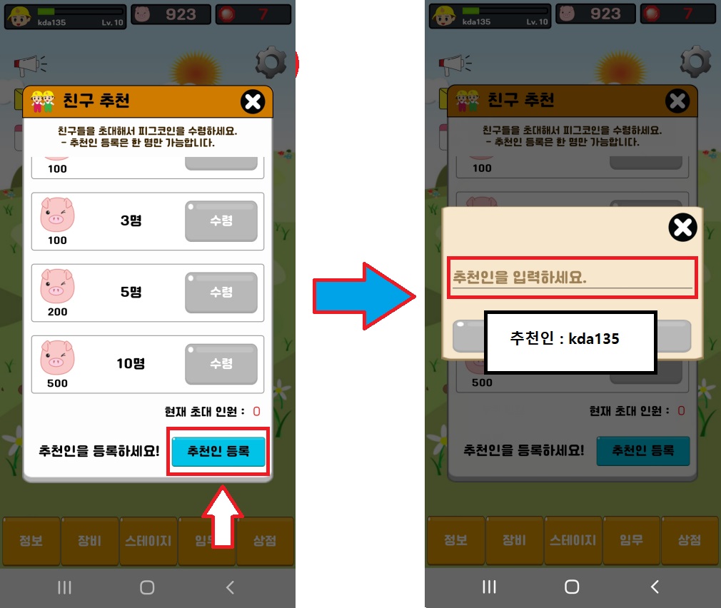 4. 추천인을 입력해주세요! kda135 입력해주시면 감사하겠습니다. ^^