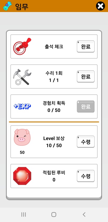 매일 출석 체크하고, 수리 1회하여 보상을 받아가세요.