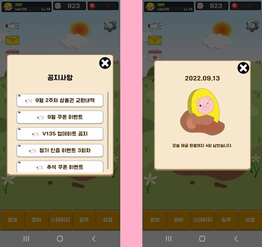공지사항의 경우 가끔 피그코인 지급 쿠폰을 뿌리기도 하기 때문에 가끔씩 확인하시기를 바랍니다.
