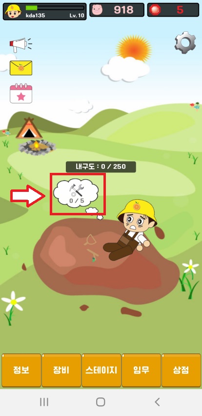 1. 장비 수리(터치)하고 땅파서(광고영상 시청) 피그코인 받기