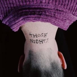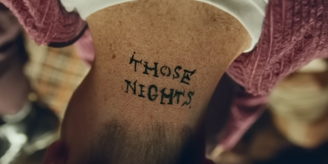 이 노래의 제목인 'THOSE NIGHTS' 라는 글자를 새긴 누군가의 목이 보입니다.