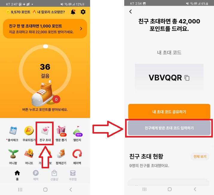 주변 친구들에게 돈버는 만보기인 머니워크를 알리면서 초대 보상도 받아보세요~!