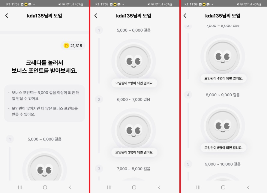 그 외에 모임 이용 및 현재 걸음 수 보너스 등 추가적인 방법으로 더 많은 포인트를 획득할 수 있습니다.