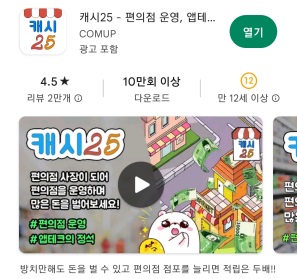 캐시25를 실행해 보면 '편의점 경영 돈버는앱'라고 적혀있는데,