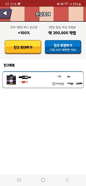 개꿀 방치형 돈버는어플 캐시25에 친구를 초대하고 머니 생산량을 증가시켜보세요.