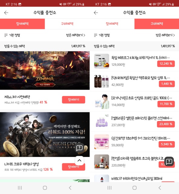 수익률 증가 또한 머니충전처럼 광고에 참여하여 보상을 받는 서비스입니다.