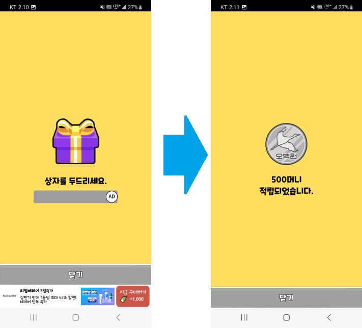머지 않아 새로운 방치형 돈버는어플이 돈버는 만보기보다 출시되지 않을까 조심스레 예상해봅니다.