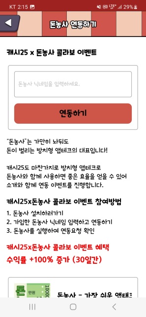 돈농사 소개글 링크를 남겨드릴테니, 한 번 읽어보시고 연동도 하고 캐시25와 함께 돈농사에서 추가 수입 얻어보세요.