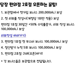 2-상세) 리뷰 작성 편의점 1호점 30일간 +50% 수익률 증가 및 리뷰 작성 보너스 10만 머니 보상