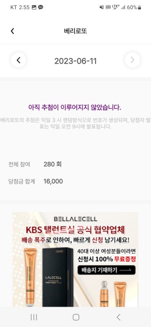 여하튼 여러분은 광고를 시청하고 상품뽑기에 도전할 수 있습니다.