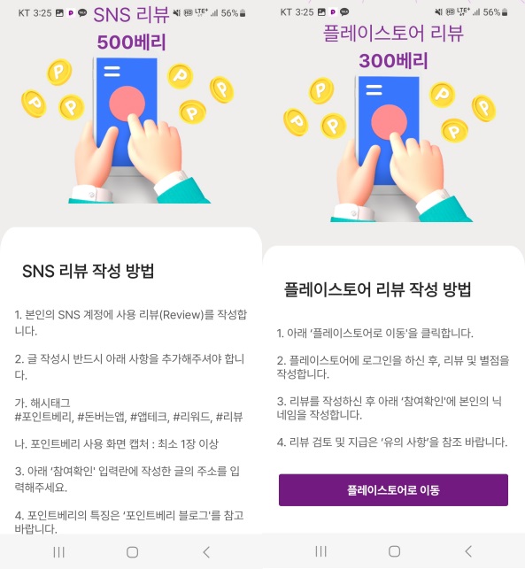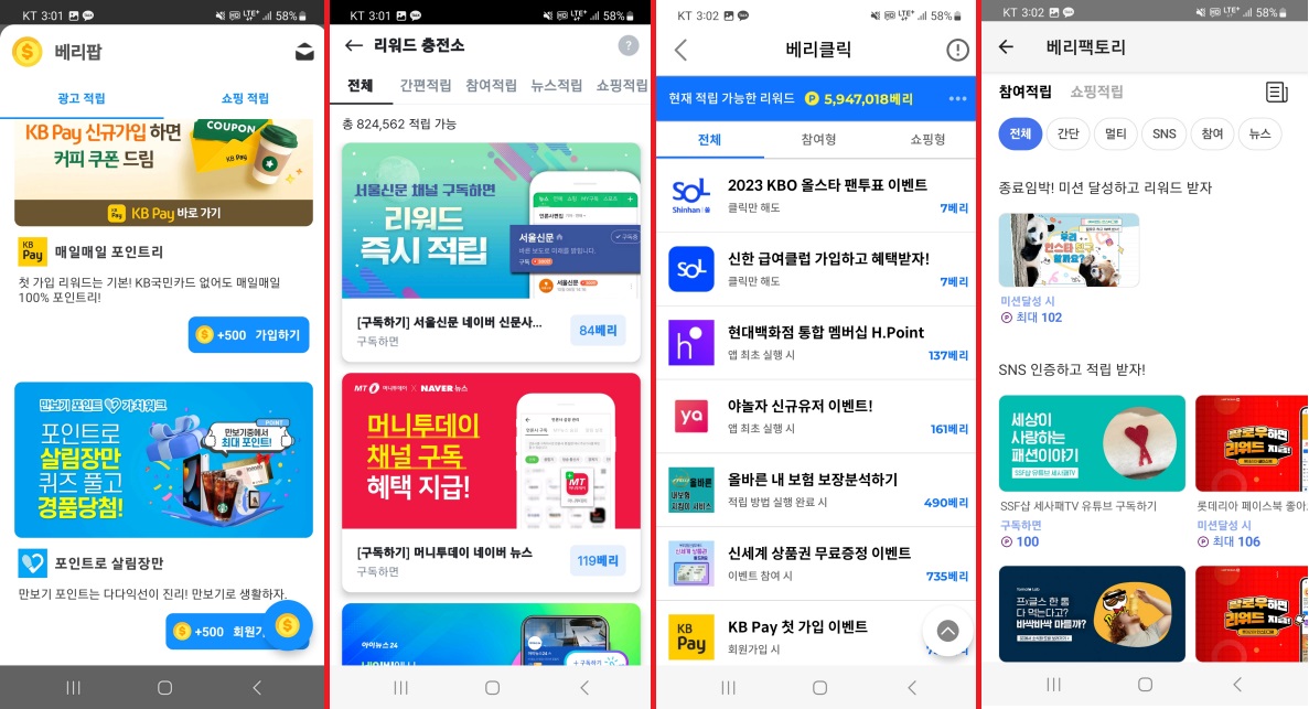 각각 서비스가 다르거나 하는 건 아니구요~ 모두 광고에 참여해서 베리를 받는 거예요.