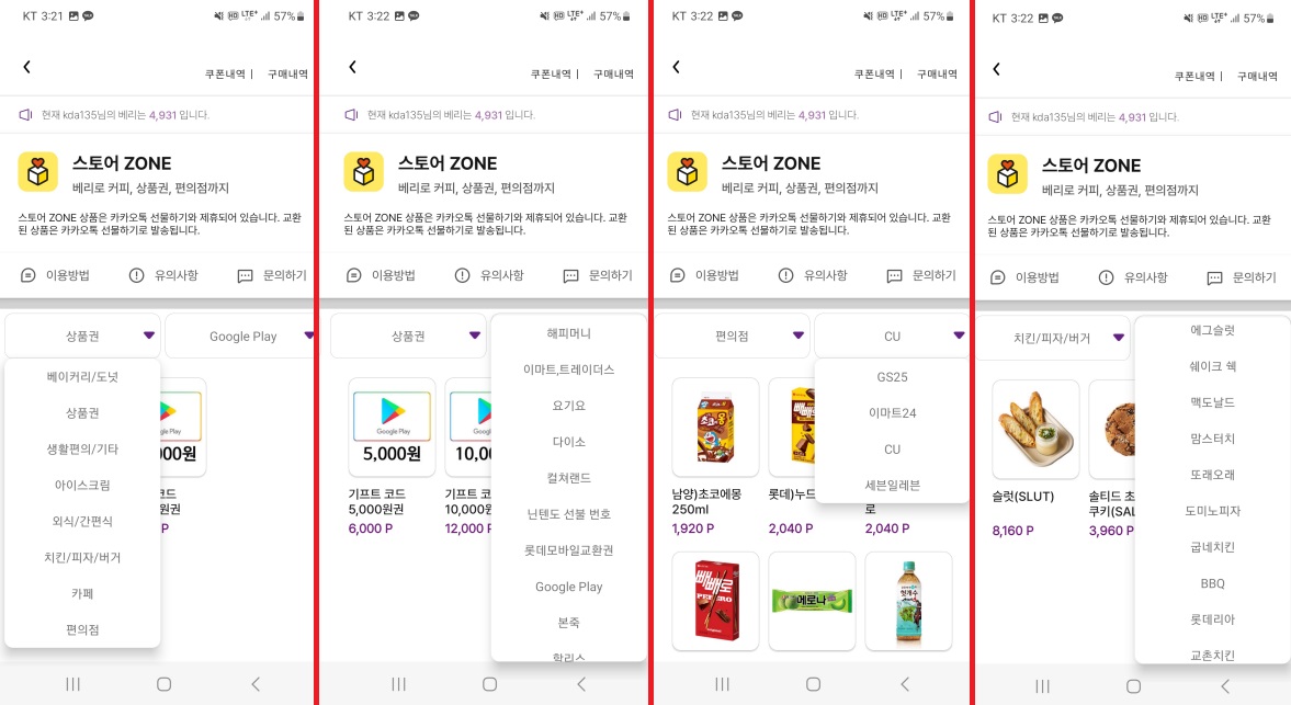 (포인트베리 스토어 ZONE 서비스랑 카카오톡 선물하기랑 제휴되어 있다고 하네요!)