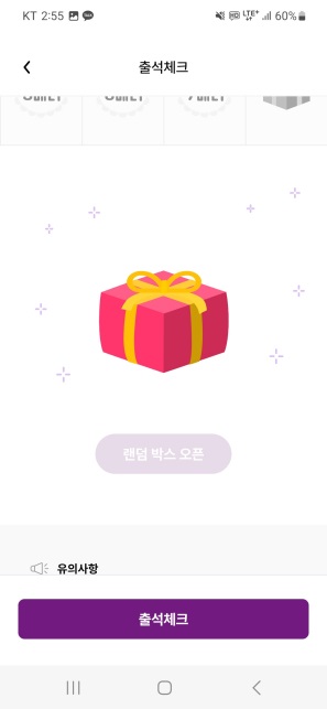 7일차 출석체크까지 완료하게 되면 랜덤박스라는 것을 받게 됩니다.