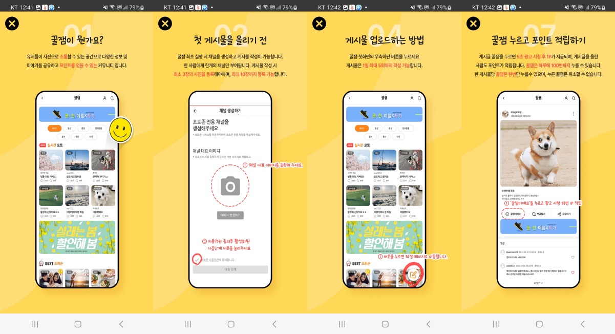 꿀잼이란, 유저들이 사진으로 소통할 수 있는 공간으로써 다양한 정보 및 이야기를 공유하고 포인트를 받을 수 있는 커뮤니티입니다.