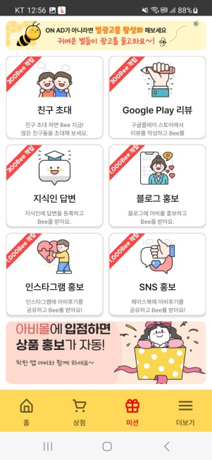 아래서부터는 아비 앱 내에서 추가로 Bee를 적립할 수 있는 방법들을 소개하겠습니다.