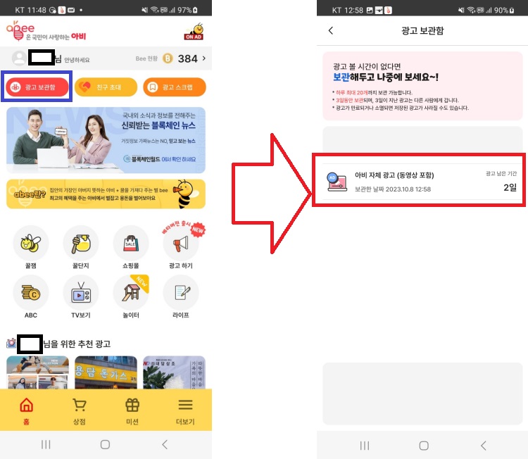 광고 Keep 보관 기간 내 언제든 보고 Bee를 적립받을 수 있습니다.