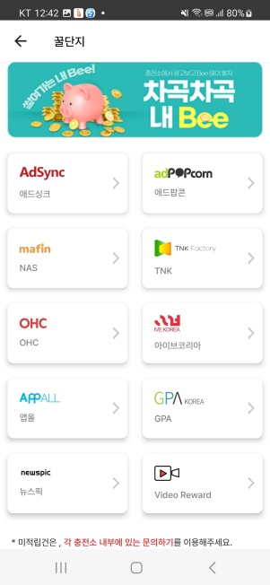 꿀단지는 외부 충전소를 통하여 광고에 참여하고 Bee를 적립받을 수 있는 서비스입니다.