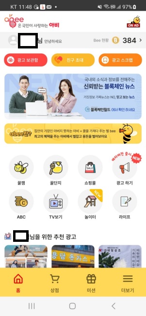 정상적으로 광고를 시청했다면 Bee 적립이 됩니다. (오른쪽 사진 참고)