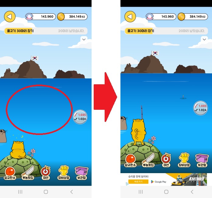 ▶ 낚시왕 뿌뇽이에 이런 기능도 있어요! (알 교환, 바다환경 기부 등)