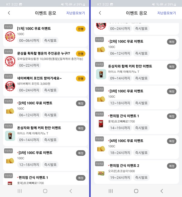 또, 당첨자 발표 시간이 정해져 있는 것도 있고, 당첨 여부를 즉시 확인할 수 있는 경품도 있습니다.