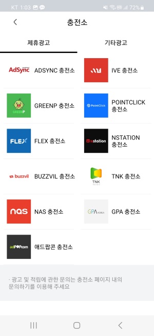 따라서 동일 광고에 대해서는 가장 높은 캐시를 지급해주는 충전소에서 참여하시는 것이 좋습니다.