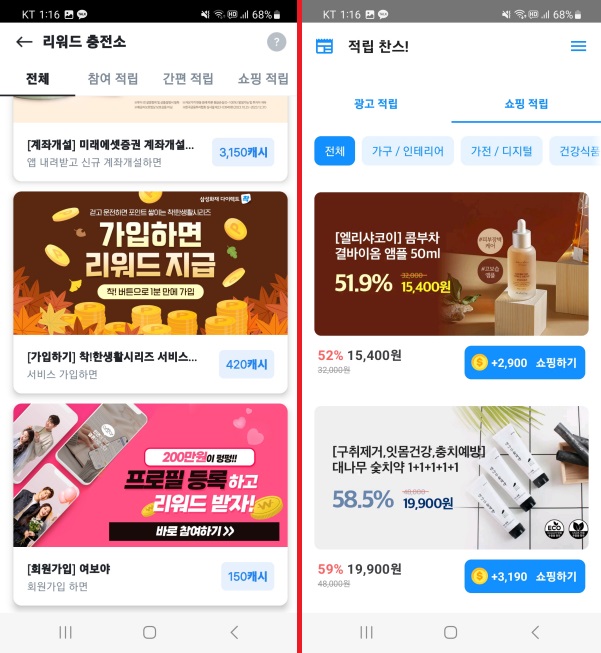 서비스 회원가입이나 상품 구매 같은 경우 어차피 구매하거나 가입하려고 했던 거라면 적립도 받고~ 필요한 일도 하고~ 일석이조겠군요.
