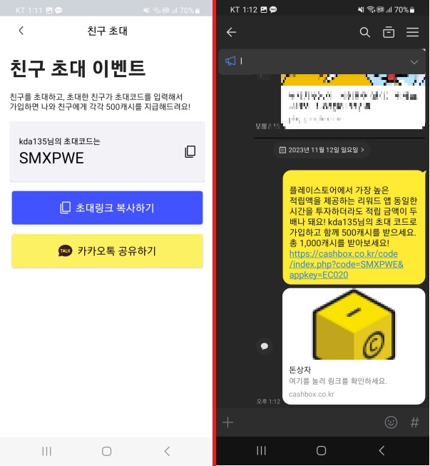 여러분의 글을 본 누군가가 여러분의 초대코드를 입력하고 가입하면 초대 보상 캐시를 획득할 수 있습니다.
