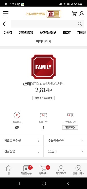 쌓은 포인트는 정관장몰에서 이용할 수 있는 막막막 퍼주는 어플 케어나우 소개를 마칩니다.