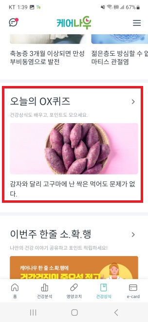 하루동안 콘텐츠형 메시지가 오지 않은 경우 케어나우 내 '건강상식'에 있는