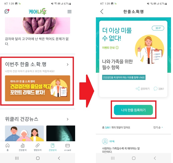 건강 관련된 주제에 대해 여러분의 생각을 댓글로 등록하기만 하면 됩니다.