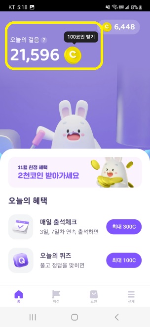 만약 오늘 만보 걸었는데 까먹고 비트버니에서 코인을 받지 않았다면 얼마나 허탈하겠나요... 🙄