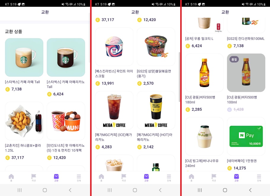 차곡차곡 모은 코인으로 상품권과 기프티콘 교환은 물론이고,