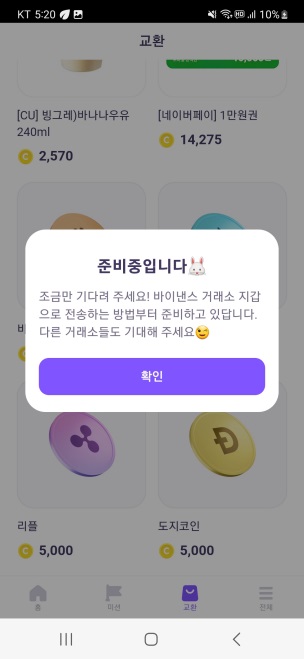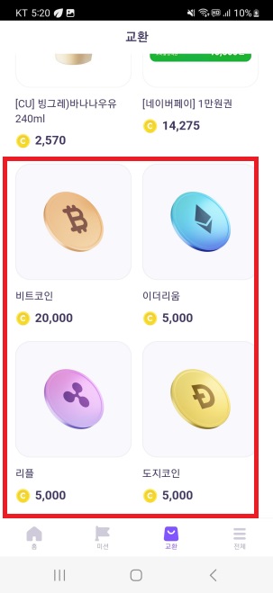 코인에 관심이 없는 분이라면, 상품권 또는 기프티콘으로 교환해주시면 될 것 같습니당