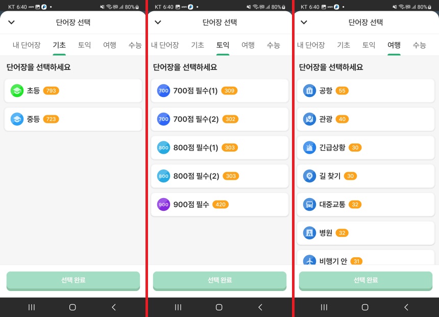 현재 초등/중등 단어도 있고, 토익, 수능 등이 있습니다.